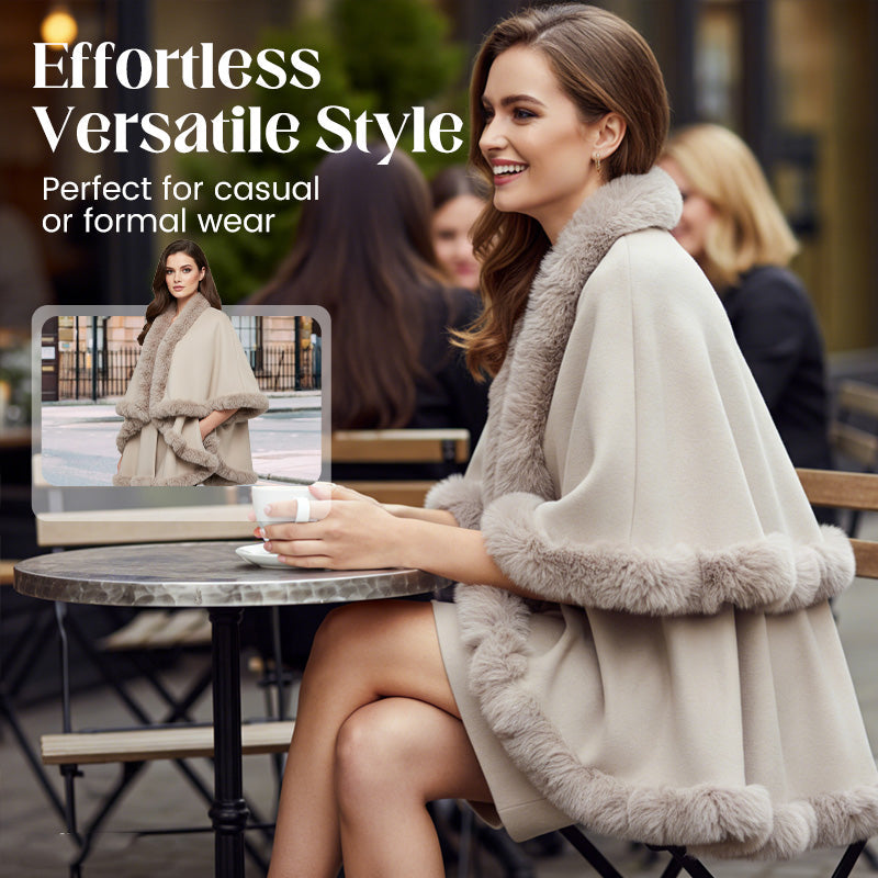 PLUSH COLLAR AND TRIM - Lined with an exceptionally soft, imitation rabbit-like trim, this cape adds a touch of sophisticated elegance and luxurious comfort, framing your neckline and elevating your entire ensemble.
