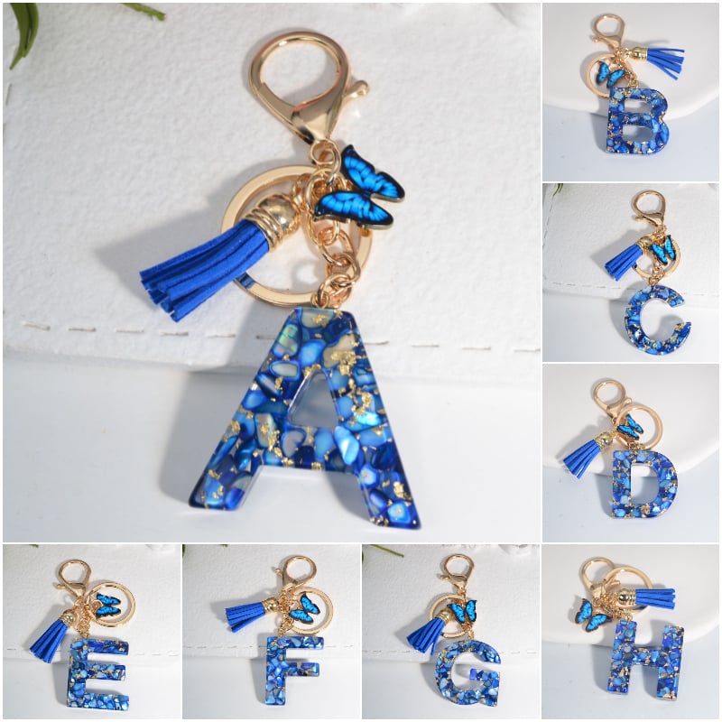 This keychain features a stunning butterfly and letter combination, offering a unique charm for personalization and aesthetic appeal.